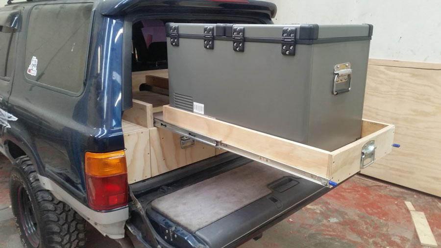 var body = document.body; body.className += " u-body u-xl-mode"; body.style.cssText += " "; var dataBg = ''; if (dataBg) { body.setAttribute('data-bg', dataBg); } Custom 4WD Fitout for Toyota This custom 4WD fitout for a Toyota features two bottom drawers and a top sliding platform for easy access to a camping fridge. Designed to the customer's specifications, it includes ball-bearing drawer runners for smooth operation. 8